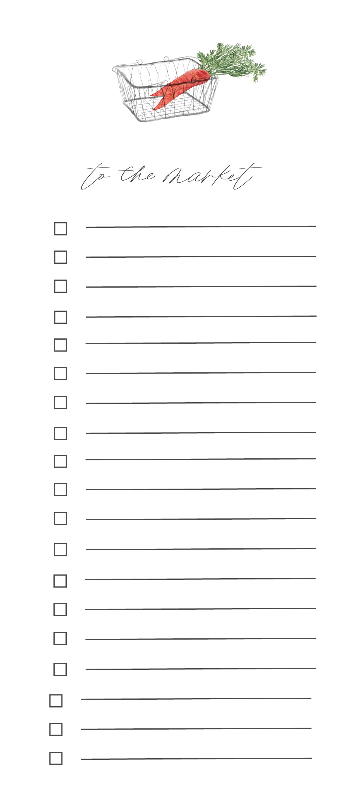 Everyone’s gotta make grocery lists. Might as well be cute right? Hand painted carrots and market basket on lined 4x9” sheets. 50 sheets.